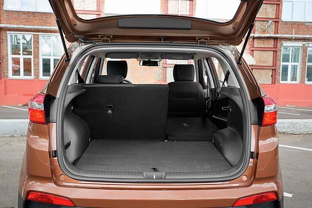 Базовая же версия предлагает обойтись без всех этих благ, характерных для машин более высокого класса. Микроклимат в салоне нужно настраивать по старинке, вручную. В условиях прохладной погоды, которая стояла в середине лета в Москве, лучше всего подходит вторая скорость вентилятора. Температуру двигателя и запас топлива нужно отслеживать по сегментированным «столбикам» указателей на центральном дисплее – решение не самое наглядное, но после недолгого периода адаптации вполне приемлемое. А вот удобство посадки за рулем (регулировка водительского кресла по высоте доступна «по умолчанию») вполне просторный салон и грамотно организованный вместительный багажник вы получаете независимо от уровня оснащения! Под полом багажного отсека скрывается полноразмерная запаска. Двухсекционная спинка также предусмотрена для всех модификаций кроссовера – ровной поверхности для багажа после ее складывания не образуется, но и характерной «ступеньки» компоновщикам Hyundai также удалось избежать.