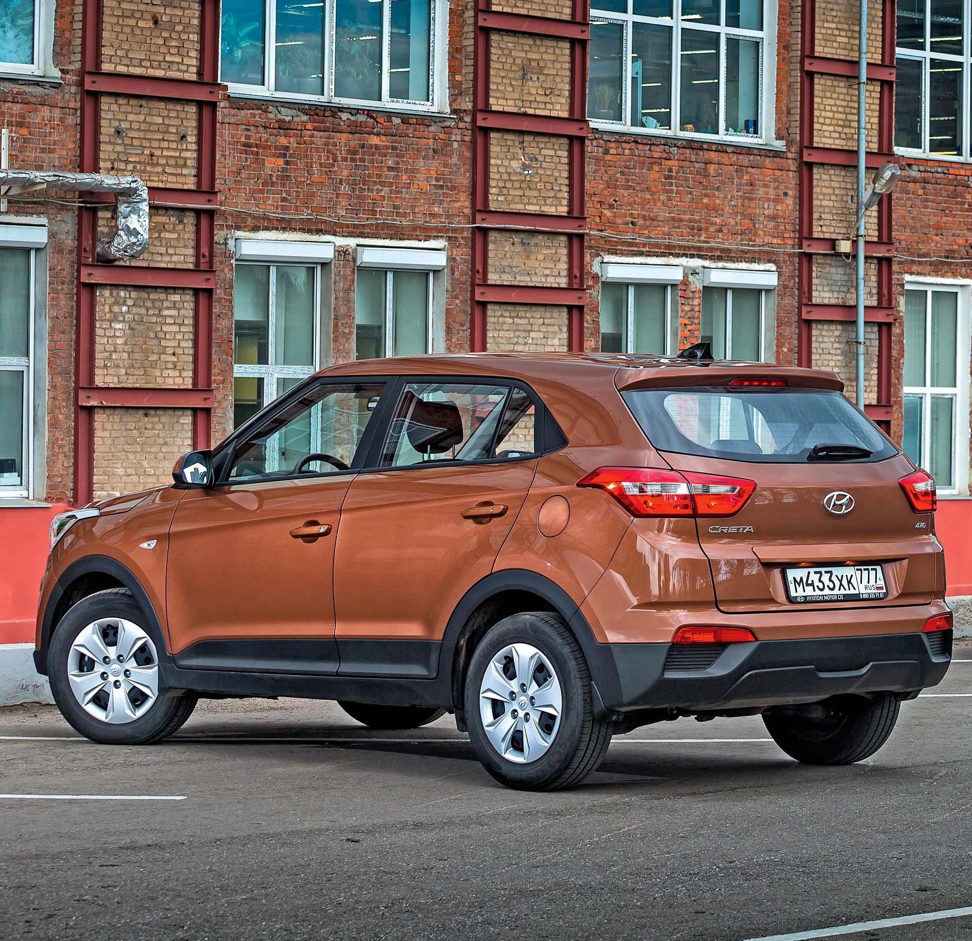 Возможностей 121-сильного 1,6-литрового мотора хватает на то, чтобы размеренно перемещаться в городском потоке и поддерживать крейсерскую скорость на трассе, а вот рискованными маневрами на такой Creta лучше не увлекаться – чрезмерной живостью силовая установка не отличается. При необходимости передвигаться динамично приходится поддерживать высокие обороты двигателя и активно работать рычагом 6-ступенчатой «механики». На случай преодоления влажного после обильных летних дождей дачного проселка предусмотрен полный привод с возможностью блокировки межосевой муфты. На пользу практичности идет и защитный пластик по низу кузова, и большой дорожный просвет – к городским бордюрным камням можно парковаться впритирку без опаски.