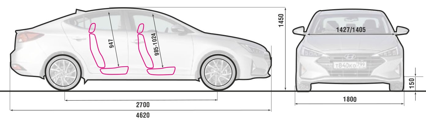 Не произошла, но фирменный стиль Hyundai эволюционировал значительно. При этом седан Elantra наиболее эффектно смотрится в старшей комплектации – как на этих страницах. Если заменить светодиодные фары с эффектными «стрелками» ходовых огней на обычные, а на расширившейся решетке радиатора зачернить пару-тройку хромированных планок – вид будет поскромнее. Колесные диски также влияют на целостность образа – а их для Elantra предусмотрено 3 вида. Базовая версия снабжена 15-дюймовыми «штамповками» с колпаками, легкосплавные 16-дюймовые колеса положены автомобилю начиная с третьей от начала версии Active, а 17-дюймовые можно заказать только в пакете опций для машины в максимальной комплектации – и то, при условии, если вы выберете мотор 2.0.
