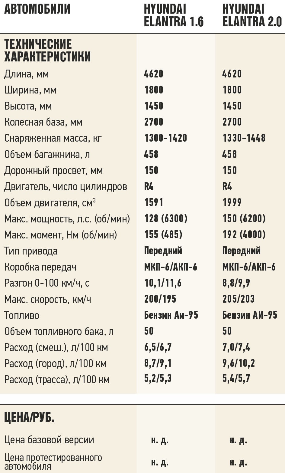 Цены обновленной Elantra на момент подготовки материала не объявлены, но известно, сколько стоят основные агрегаты. Так, чтобы получить 6-ступенчатую АКП, а не «механику», придется доплатить 35 000 рублей, двигатель 2.0 мощностью 150 л.с. против 128-сильного 1.6 – еще 30 000 рублей доплаты.