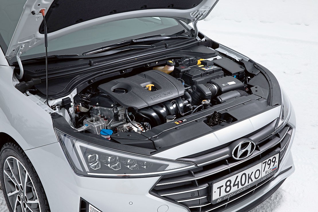 Если говорить именно о таком автомобиле, богато оснащенном, со 150-сильным бензиновым мотором 2.0 и 6-ступенчатой АКП, то он производит впечатление вполне комфортного, добротно собранного и при этом драйверского. Такая Elantra уверенно набирает скорость, а собранность подвески позволяет чувствовать себя комфортно при обгонах. Версия с базовым мотором 1.6, разумеется, несколько проигрывает в динамике. Но не только: по ощущениям такой автомобиль воспринимается менее «породистым». Сильнее раскачивается на неровностях, менее четко следует за рулем. Возможно, это всего лишь субъективные ощущения. Но они достаточно прочно засели в памяти.