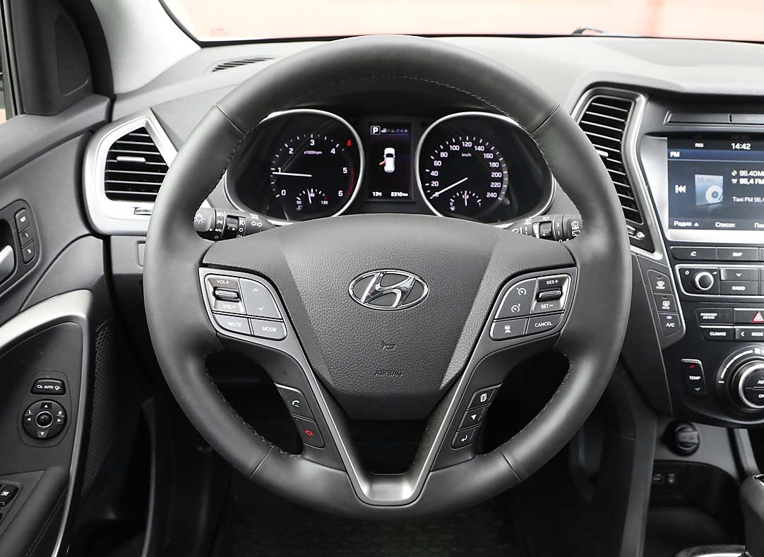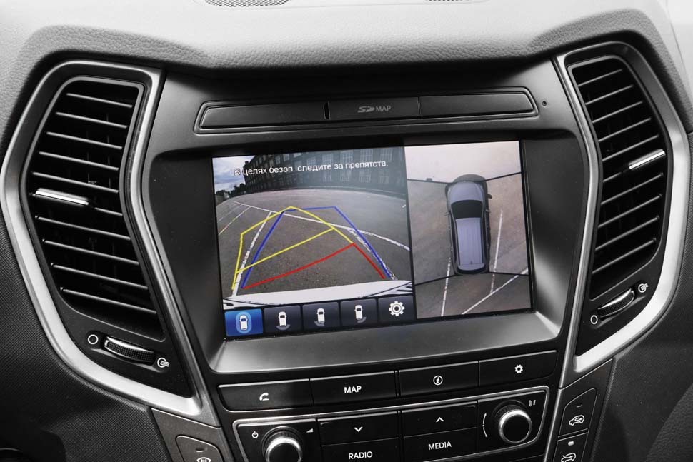 А вот за что Grand Santa Fe однозначно хочется хвалить – так это за обзорность и хорошую работу «круговых» камер. На экране видно абсолютно все, можно протискиваться в плотно заставленных машинами дворах, смотреть, чтобы ни на что не наехать колесом... Удобно!
