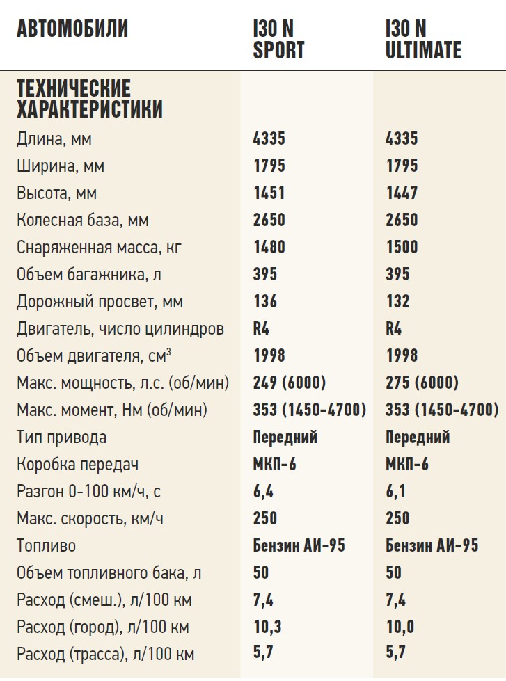 В Россию Hyundai i30 N привезут в версиях, ничем не отличающихся от европейских, и с очень богатым набором оборудования. Корейцы пошли по привычному пути формирования фиксированных комплектаций, но i30 N – не Solaris, поэтому уровней оснащения здесь будет всего два. Начальный – для машины с 249-сильной силовой установкой. Тут не окажется кожи и алькантары, а также набора экстремальных спортивных опций вроде лонч-контроля – системы, помогающей максимально эффективно стартовать с места, бросая педаль сцепления. Богатая же комплектация – только для 275-сильной модификации. Здесь уже предусмотрена и роскошная отделка, и электронные ассистенты.