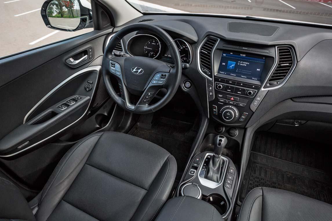 Именно столько стоит тестовый «паркетник» Hyundai Santa Fe с дизельным мотором и в максимальной комплектации. Есть, конечно, версии и подешевле. Так, базовая машина с бензиновым двигателем и минимумом опций обойдется в 1 856 000 рублей. Но только в топовой комплектации Santa Fe может аргументированно ответить на вопрос недоумевающего покупателя «за что такие деньги?» Корейцы расстарались и наполнили среднеразмерный кроссовер оборудованием, присущим автомобилям классом повыше. К примеру, оба передних кресла имеют не только электрические регулировки, но и функцию вентиляции. И это только малая толика приятных мелочей, из которых соткан Santa Fe. Интерьер – одна из самых приятных его сторон. Кожаная отделка, качественный пластик, панорамная крыша с огромным люком (доступна в дополнительном пакете опций стоимостью 75 000 рублей) – все располагает к приятному времяпрепровождению и неспешной езде. В случае с Santa Fe его характер отлично передается водителю и пассажирам.