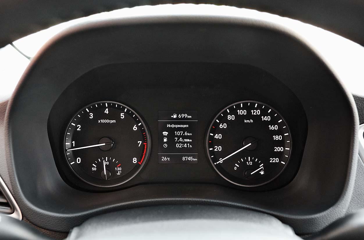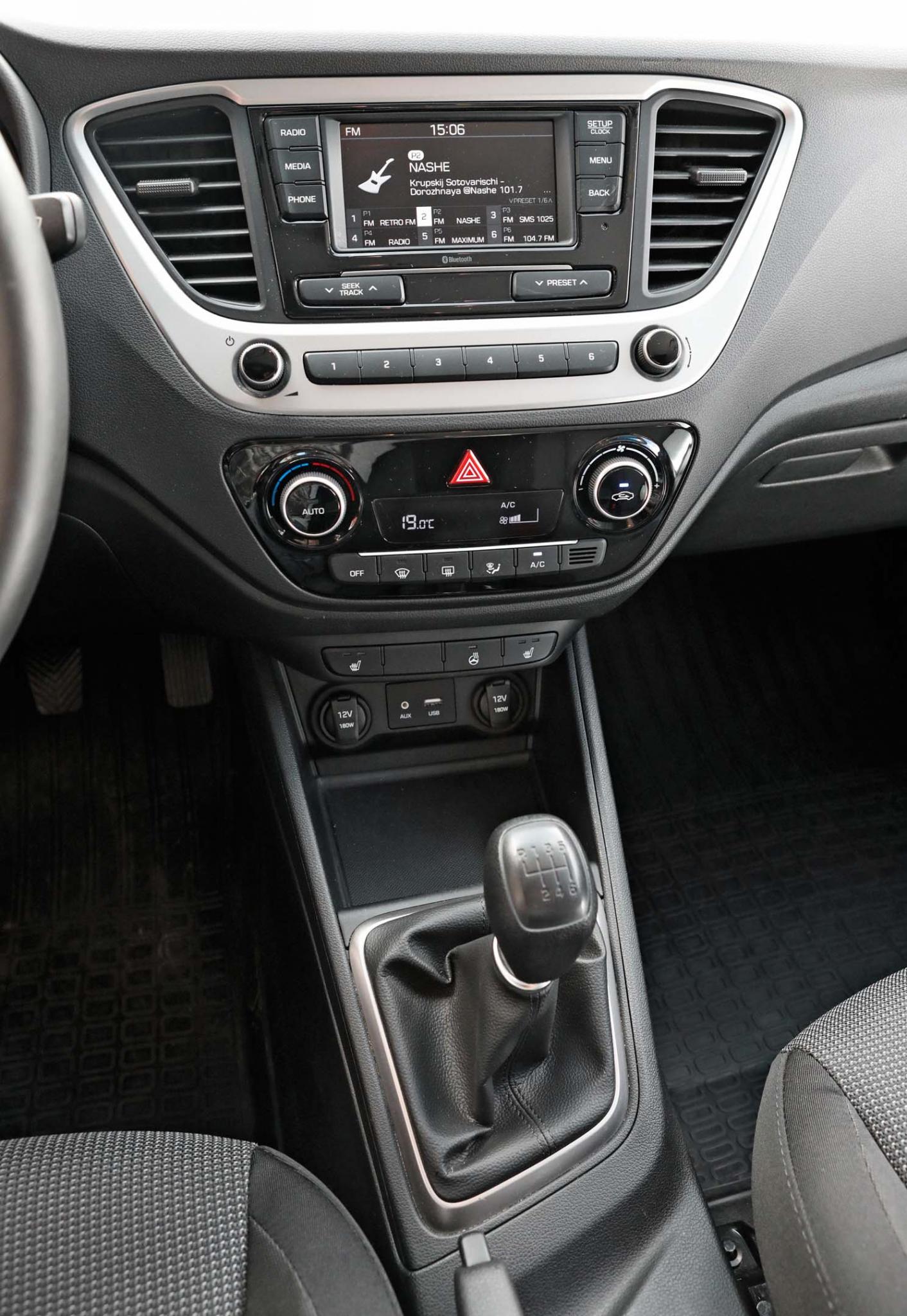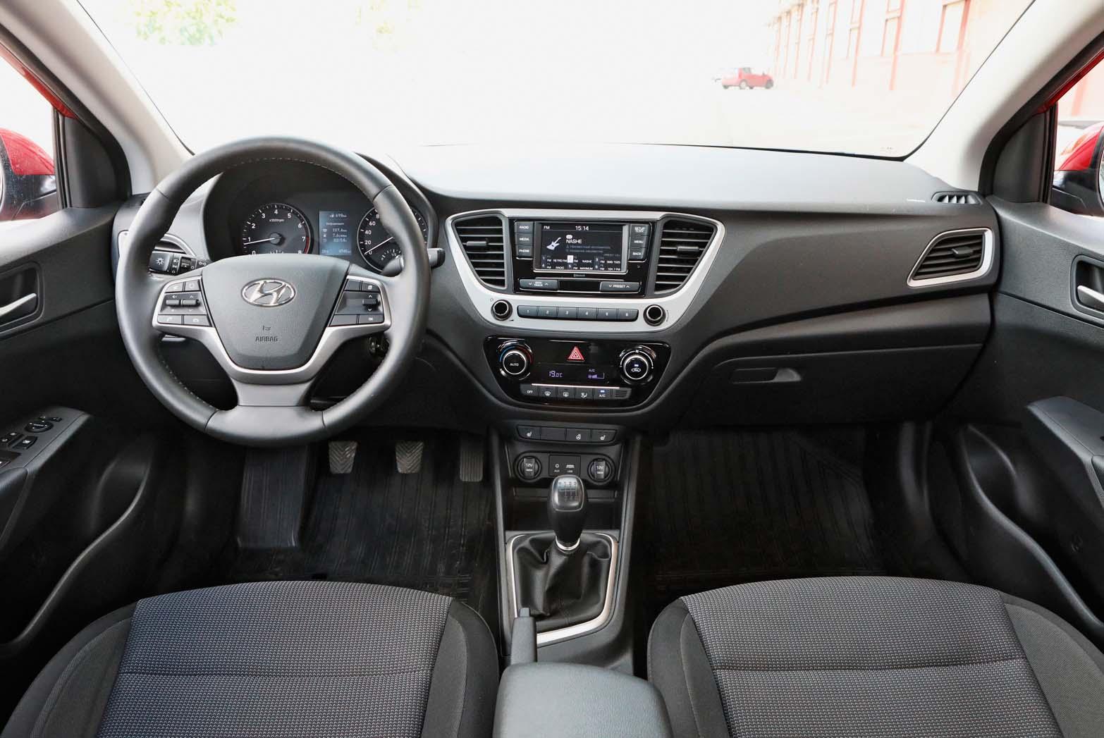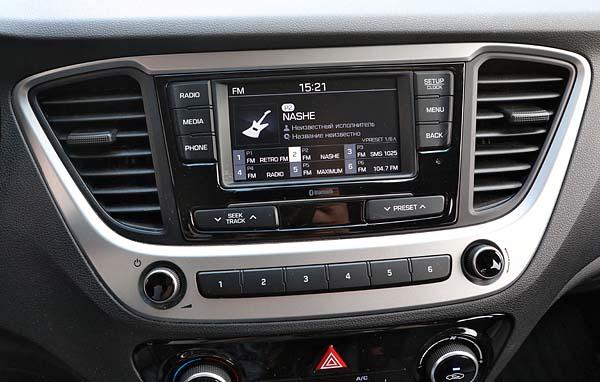 Больше всего горевать стоит, наверное, из-за отсутствия мультимедийной системы с 7-дюймовым тачскрином. Для Solaris с двигателем 1.4 предлагается только простенькая аудиосистема, которой приходится управлять с помощью кнопок на передней панели. Клавиши управления на руле и возможность подключения телефона посредством Bluetooth доступны только в топовой комплектации.