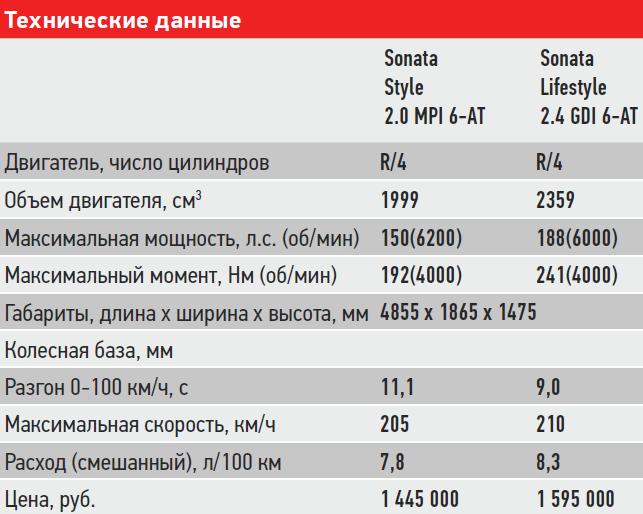 Всего нам предлагают пять комплектаций автомобиля, и выбрать можно почти под любой кошелек. Трансмиссия единственная – автоматическая 6-ступенчатая. В базовой версии Primary за 1 245 000 рублей вместе с АКП вам достанется не самая продвинутая 2-литровая «четверка» на 150 «лошадей». Более современный двигатель семейства Theta-II с непосредственным впрыском появляется только в четвертом уровне оснащения – в комплектации Lifestyle за 1 495 000 рублей. С ним гораздо проще осуществить обгон, машина едет заметно энергичнее. Однако что называется выстреливать, с места или с хода, Sonata не приспособлена. Как, впрочем, и многие ее основные конкуренты.