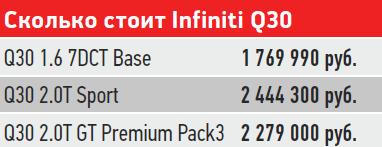 Стоило бы считать эту замечательную машину просто дорогой игрушкой. Однако и в ней есть некий рациональный корень. Если собрать А-Класс в имеющейся у нас комплектации Q30, то стоимость такого «немца» вас неприятно удивит. Infiniti хорошо знает свое место и пользуется этим.