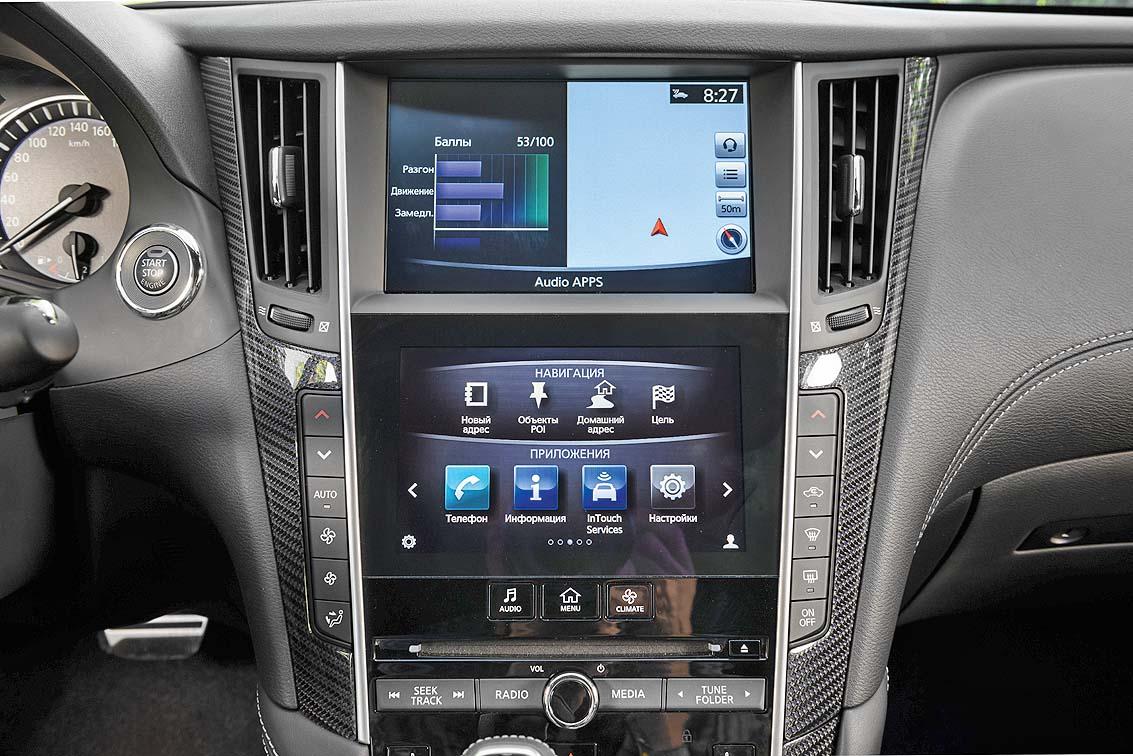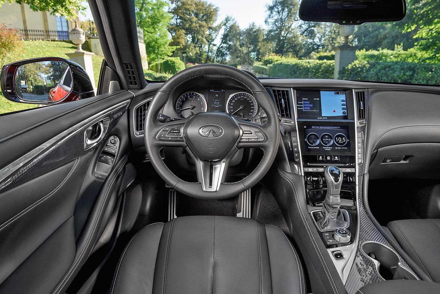 И в целом купе Infiniti не воспринимается как трудноуправляемый спортивный снаряд, который по недосмотру маршалов вырвался на волю с гоночного трека. Этот автомобиль способен с достоинством катиться в «прогулочном» режиме, радуя хорошей шумоизоляцией и плавностью хода, несмотря даже на штатные 19-дюймовые диски с низкопрофильными шинами. Специалисты Infiniti уделили большое внимание шумоизоляции моторного щита и центрального тоннеля, а также применили более толстые стекла – и в жизни это чувствуется, в салоне комфортно. Способен Q60 надежно ехать в быстрых поворотах извилистых сельских и горных дорожек – но определенная «дистанция» между водителем и автомобилем при этом чувствуется. Некоторые из одноклассников-конкурентов способны дарить в подобных условиях более тонкие и чистые ощущения, но при этом они не так комфортны и универсальны. Так что каждому свое – тем более что человек, выбирающий себе мощное и яркое купе в дополнение к «зимнему» внедорожнику, скорее всего, не стеснен в средствах.