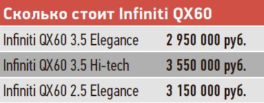 Так кто же он, покупатель Infiniti QX60? Он – точно нетипичный поклонник этой японской марки. Он – семьянин, который устал играть в крутого парня, но не готовый до конца отказаться от сложившегося имиджа. Просто ему нужен большой и комфортный семиместный автомобиль. И Infiniti QX60, пожалуй, как никто другой хорошо справляется с этой задачей. Только плати. Стартовая цена кроссовера – от 2 830 000 рублей.