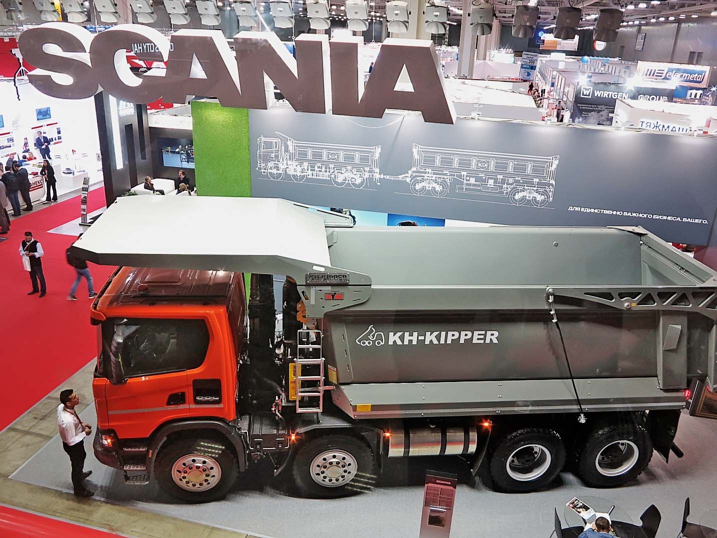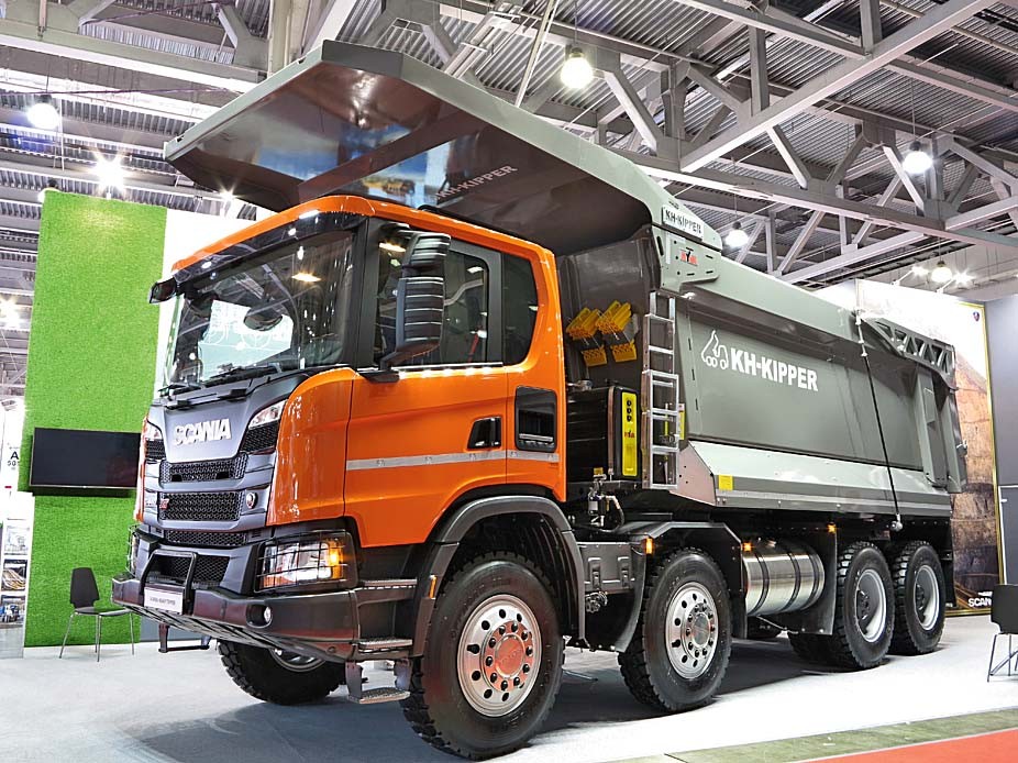 Карьерные самосвалы Scania созданы для работы в тяжелых условиях горнорудных месторождений и угольных разрезов. В рамках выставки состоялась российская премьера самосвала Scania G440 XT (8х4). Его 13-литровый двигатель развивает 440 л.с. и 2300 Нм, соответствует экологическим нормам «Евро-5». Кузов KHKipper выполнен из высокопрочной стали и вмещает 25 м3. Разрешенная полная масса автомобиля – 50 т.