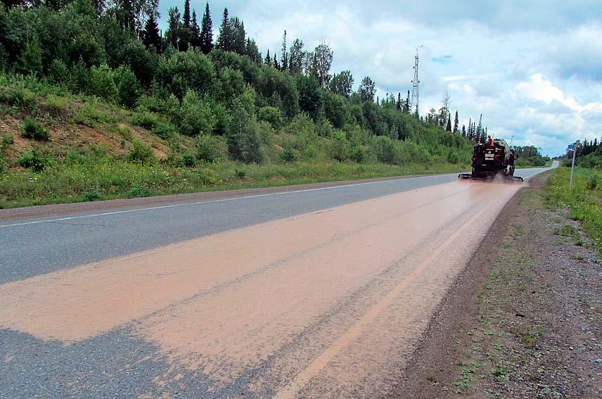 В Красноярском крае на региональной дороге «Верхняя Бирюса – Ибрюль» три участка общей протяженностью 10 км обработали специальной эмульсией. Асфальт «омолодили», и теперь на этом участке ремонт не потребуется еще два-три года. Специальная эмульсия проникает в дорожное покрытие на несколько сантиметров, восстанавливая первоначальные свойства битума, что позволяет повысить качество сцепления между составными частями асфальтобетонного покрытия. В теории обработке такой эмульсией подлежит дорога, срок ремонта которой уже прошел, но возможности провести полноценный ремонт пока нет. Стоимость такой обработки в 15 раз меньше стоимости ремонта.