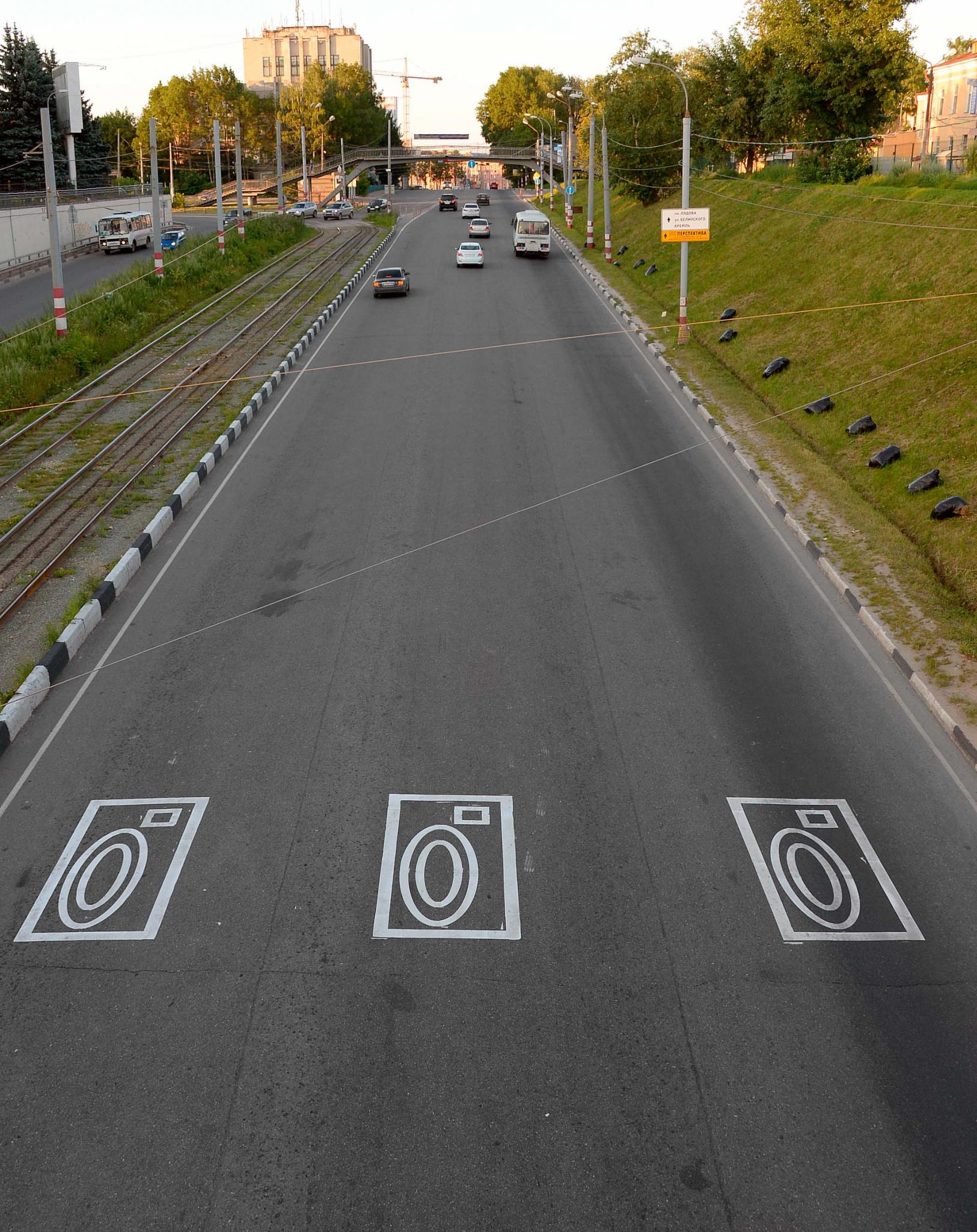 Но ведь не все ограничения вводятся дорожными знаками. Иногда они могут быть обусловлены статусом дороги или места, через которое она проходит. Например, все знают, что общее ограничение скорости в городе – 60 км/ч. Для этого нет необходимости устанавливать знаки «60», а лишь достаточно проинформировать водителя о том, что он находится в населенном пункте, установкой соответствующего дорожного знака 5.23.1 с названием города или поселка на белом фоне или знака 5.23.2 (на нем, если кто не помнит, изображен силуэт города). Однако с этими знаками дополнительная табличка не применяется – стандарт не предусматривает. Как раз для таких случаев в «запасе» у ПДД имеется дорожная разметка 1.24.3 со схематичным изображением фотокамеры. Беда в том, что разметка – вещь в наших условиях крайне непрактичная: она может стереться, загрязниться или просто остаться не замеченной водителем.