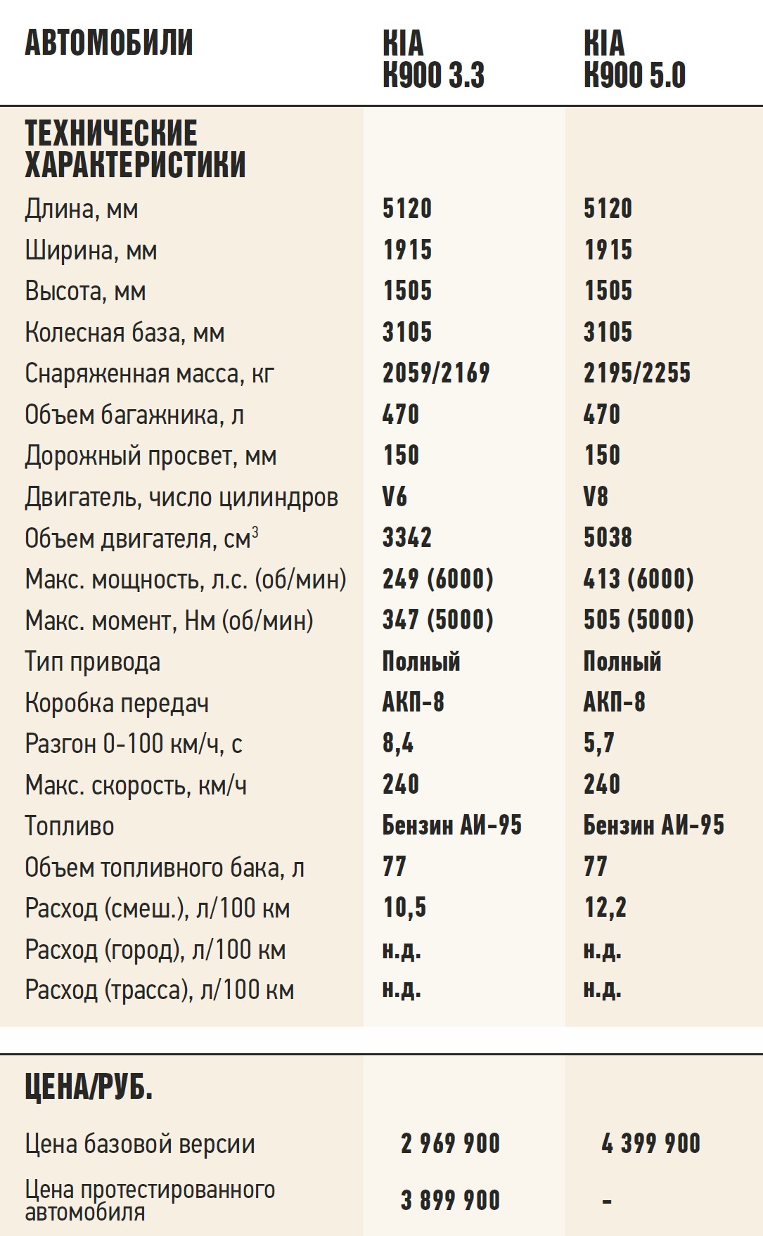 В России Kia K900 будут продавать с двумя атмосферными бензиновыми моторами. В Kia подсчитали, что доля автомобилей с двигателями мощностью более 250 л.с. в классе F с каждым годом уменьшается. Поэтому основную ставку в Kia делают именно на младший мотор мощностью 249 л.с. – оптимальный с точки зрения налогообложения. А что вы думали, люди, приобретающие дорогие автомобили, не умеют экономить? Еще как умеют! Топовой же модификации с V8 мощностью 413 л.с. отведена менее завидная роль – в корейской компании рассчитывают, что на нее придется всего 5% продаж.