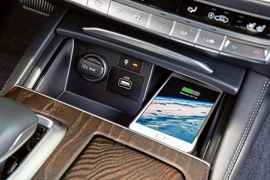 ПЛОЩАДКА ДЛЯ БЕСПРОВОДНОЙ зарядки есть как спереди, так и сзади – в большом откидном подлокотнике.