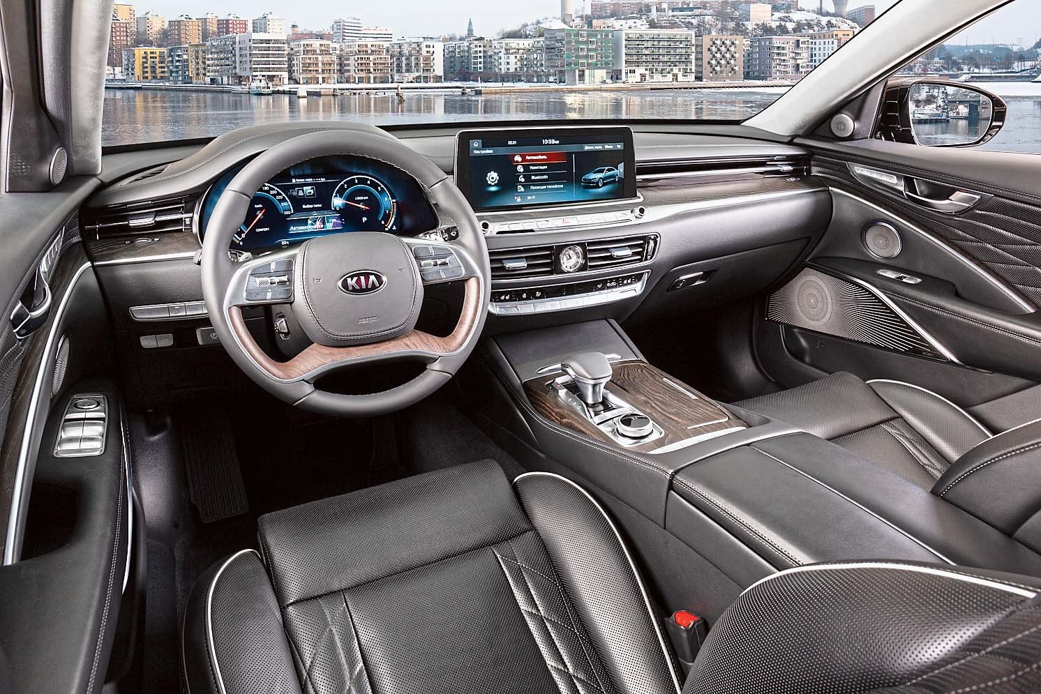 Материалы отделки и качество исполнения в Kia K900 такое, что не стыдно и перед более дорогими конкурентами показаться. На выбор предлагается два цветовых решения для интерьера – с доминирующим черным или коричневым. Кожаная обивка – уже в базовом оснащении. Подгонка деталей и точность стежков – филигранные.