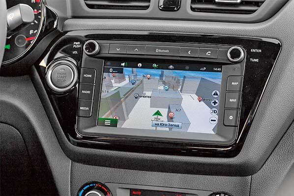 Времени рассказывать, какие еще козыри припасены у Kia Rio в рукаве, к несчастью, уже не было. А то к этому «теплому» списку нашлось бы что добавить. К примеру, в максимальной комплектации Premium Navi (как раз той, за которую просят почти миллион рублей) также значатся светодиодные дневные ходовые огни и такие же задние фонари. Интерьер украшает приборная панель Supervision, на которую выводится полезная информация об автомобиле и о поездке. Удобная вещь – данные считываются легко, навигация по меню проста и логична… Кстати, о навигации. Тут она тоже есть – с 7-дюймовым экраном, возможностью получать сведения о пробках и функцией Miracast. Что за штука такая? Все просто – с ее помощью можно отобразить информацию с экрана смартфона прямо на дисплее навигационной системы.