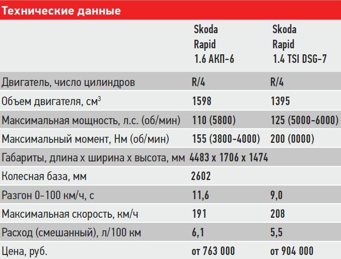 Под капотом Kia Rio трудится знакомый по автомобилю предыдущего поколения 1,6-литровый бензиновый двигатель мощностью 123 л.с., которому ассистирует 6-ступенчатый автомат – предыдущая версия Rio получила такой после рестайлинга. В активе Rapid – 125-сильный турбомотор в паре с «роботом» DSG. Отсюда и различия в поведении – при частых переключениях в пробках Rapid ведет себя порезче, чем Kia, готовый обеспечить плавное перемещение в пространстве. В целом Rapid воспринимается более жестким и динамичным – «по паспорту» в разгоне до 100 км/ч он выигрывает у Rio 2,2 c, руль в поворотах отзывается приятной тяжестью, а подвеска готова перебирать встречающиеся в пути мелкие неровности покрытия. Kia на его фоне более дружелюбен и покладист, его «баранка» вращается легко.