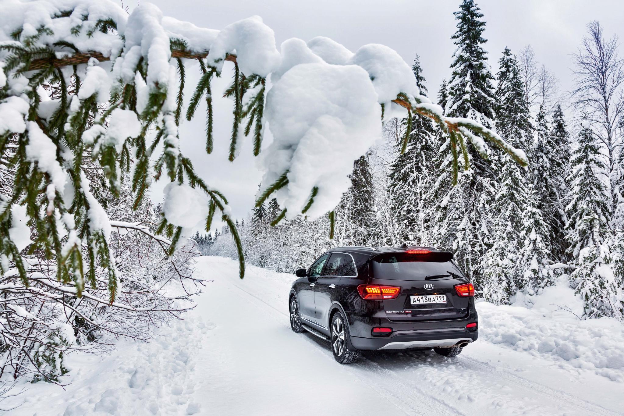 Основное техническое изменение – у кроссовера появилась новая коробка передач, 8-ступенчатый автомат. Знакомая по дорестайлинговой машине автоматическая 6-диапазонная КП также осталась в строю, но она теперь положена только базовой версии «паркетника» и агрегатируется исключительно с младшим в гамме бензиновым мотором 2.2. Кроме него в линейке обновленного Sorento Prime есть дизельный агрегат и V6, работающий на бензине. Как рассказали представители Kia, наиболее популярной модификацией дореформенной машины была именно версия на тяжелом топливе – на долю дизельных Sorento Prime приходилось около 75% продаж модели. Поэтому для теста по заснеженным дорогам Карелии мы выбрали именно такую машину.