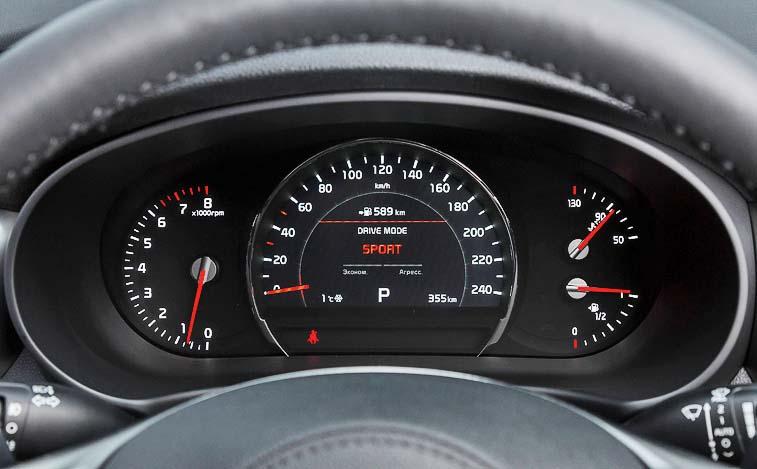 Есть у обновленной машины еще одна интересная «фишка», касающаяся технической части – новый режим движения Smart. Он не просто дополнил привычные алгоритмы Eco, Comfort и Sport, нет. Он может их разом заменить. Работает этот «умник» следующим образом – в зависимости от поведения водителя электроника сама переводит коробку передач в нужный режим. Так, если автомобиль движется по трассе и педаль газа нажата меньше, чем на четверть – будет использоваться алгоритм Eco. Нужно пойти на обгон – резкое нажатие педали газа, а машина уже разгадала намерения водителя и сменила настройки на спортивные. Это помогает избежать постоянного переключения режимов движения вручную, что очень удобно. Реакция «мозга» кроссовера на действия водителя, естественно, не моментальная, но назвать Sorento Prime тугодумом тоже никак нельзя.