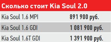 За то время, пока Kia Soul второго поколения присутствует на российском рынке, номенклатура доступных для него агрегатов корректировалась неоднократно. Помимо автомобилей с базовым 1,6-литровым 124-сильным мотором продавались здесь и машины с дизелем, позднее «подтянулся» бензиновый 132-сильный мотор с непосредственным впрыском, а дизель покинул Россию, затем свет увидела «заряженная» модификация GT, а с недавнего времени предлагается и кроссовер с 2,0-литровым атмосферным мотором.