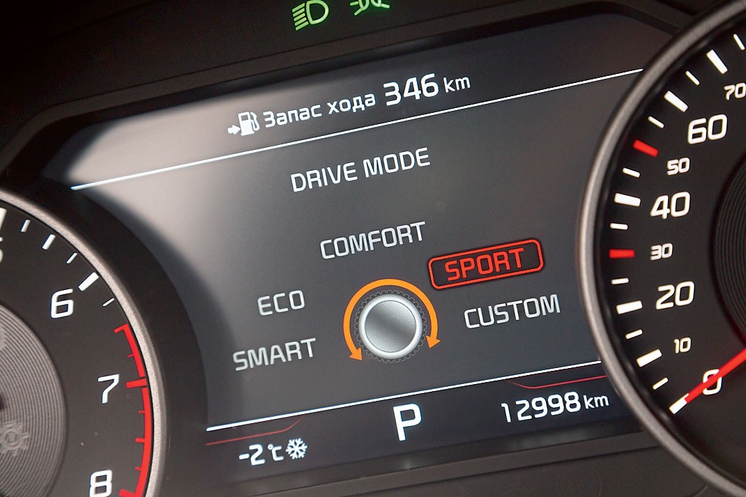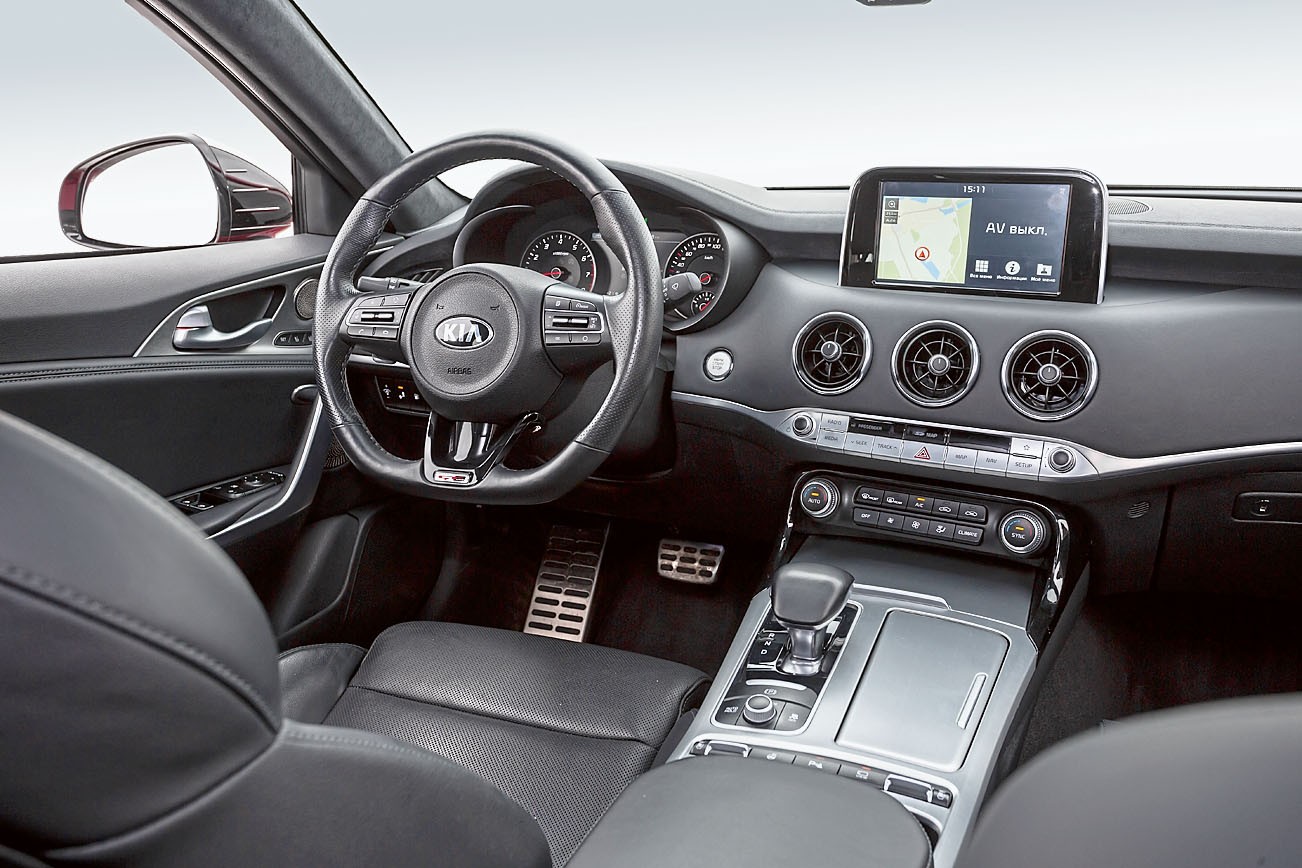 Да, в салоне «Стингера» все в порядке с климатом и в наши морозы. В жару, впрочем, тоже – проверено на Майорке на мировой премьере машины полтора года назад. Автомобилю положены подогревы передних и задних сидений, обогрев рулевого колеса и зеркал – все это по умолчанию для всех комплектаций. Правда, вот лобовое как раз не подогревается – ни в какой версии. И на самом деле это как раз становится проблемой, приходится порой его и скребком очищать, и сидеть, ждать, пока наледь растает, бывает, тоже надо. Зато счастье, что Stinger, в отличие от некоторых «приспортивленных» конкурентов, не оснащен безрамочными дверьми. В любой мороз вы в салон без проблем попадете.