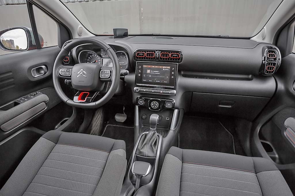 Желание С3 Aircross показать себя заметно не только со стороны. Сказать, что его салон необычен, значит не сказать ничего. Это особое, собранное словно из игрушечных цветных кубиков, архитектурное пространство. Но вот каково пользоваться им? У меня нет претензий к обзорности и читаемости приборов, и от жесткого пластика не коробит, но мне не очень нравятся плоские кресла без какого-либо намека на боковую поддержку и спрятанные в их основании «слепые» регуляторы обогрева. Климат-контролю не помешали бы свои отдельные кнопки. Алгоритм выбора нужной температуры кликами по экрану мультимедийной системы, на мой взгляд, не оптимален. Пустоту между передними сиденья неплохо было бы занять боксом со сдвижным подлокотником. Ведь французы знают, как совмещать авангард с практичностью. У Citroen C3 Aircross есть удобный багажник с вместительным подполом, а кроме того – опциональный пакет Familу, включающий солнцезащитные шторки на задних стеклах, складную спинку переднего пассажирского кресла и двигающийся в продольном направлении диван. Вот только, как ни регулируй наклон его спинки, найти комфортную посадку для рослых пассажиров не получится. Для ног места в обрез, а низкий потолок заставляет нагибать голову.
