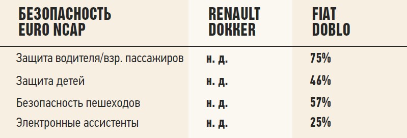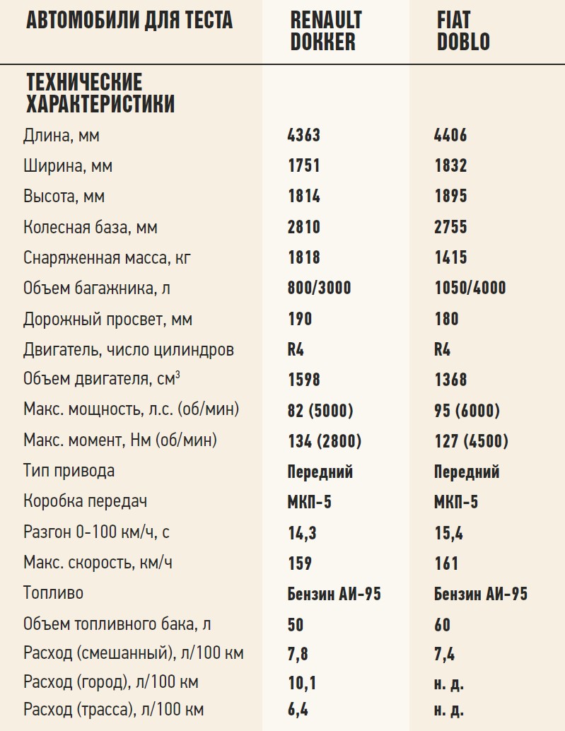 В общем, по силовой паре примерный паритет, если не считать более аккуратной работы «механики» у Fiat. Зато с ездовым комфортом лучше обстоят дела в Dokker. Иные эксперты назовут его подвеску и реакции на поворот руля более мягкими. Может и так, но серьезный дорожный брак «француз», как и «итальянец», встречает жестким отбоем. А вот мелкие асфальтовые и прочие несуразности преодолевает заметно комфортнее. И здесь возникает парадокс: прокатиться по городу интереснее на более маневренном, строгом и четком в управлении Doblo, тогда как для повседневной эксплуатации на разном покрытии предпочтение правильнее отдать Dokker. У него и руль легче, и вытряхивает на неровностях не так активно.