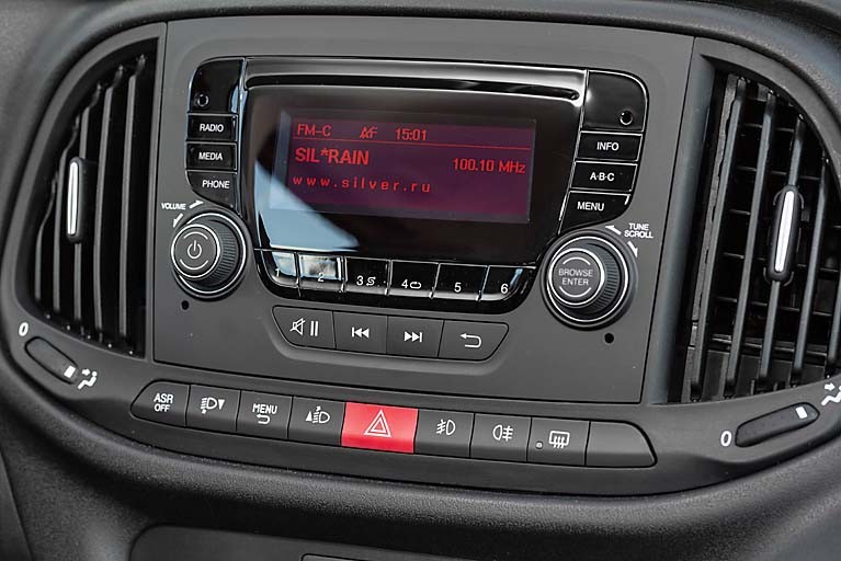 Привычные эргономические «прихваты» «Логана», увы, достались и «каблучку». Но прочь снобизм! Условия игры – максимум возможного за минимальные деньги. Однако мы все равно удивились, узнав, что наш Dokker – в топовой комплектации Drive за 970 990 рублей. Здесь нет магнитолы (опция), зато можно воспользоваться круиз-контролем с разбросанными по салону кнопками управления и функцией лимита скорости. Есть кондиционер, тогда как в Doblo его предлагают докупить отдельно за 34 000 рублей. Априори никакой «музыки» у «итальянца» тоже нет. Имеющийся медиацентр с разъемами AUX и USB, а также Bluetooth обойдется в 25 600 рублей. Вот и думай, что лучше.