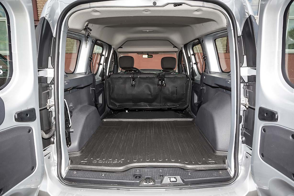 Некогда машину даже собирали в России, но в 2015-м Doblo покинул наш рынок, чтобы в феврале 2018 года вернуться уже в турецком исполнении. Он похорошел и заматерел. По внешности и общему ощущению от машины его техническое задание в сравнении с конкурентом выглядит дороже. Впрочем, если разобраться, он лишь пускает пыль в глаза с помощью дополнительно установленных опций. Да и материалы отделки салона обоих, судя по всему, сварены из одной и той же нефти самых недорогих сортов. Что пластик обшивки, что обивка сидений. В «Фиате» синтетика кресел чуть более скользкая, а принципиальных отличий в форме и наклоне сидений мы не обнаружили. Посадка одинаковая! Достаточно человечная, хоть и без боковой поддержки, спереди и «посадка-десятиминутка» – сзади. Дольше на таких кушетках ездить некомфортно – болтает по сторонам. В Doblo хотя бы имеется ручка на двери чтобы держаться. На втором ряду Dokker хвататься решительно не за что.