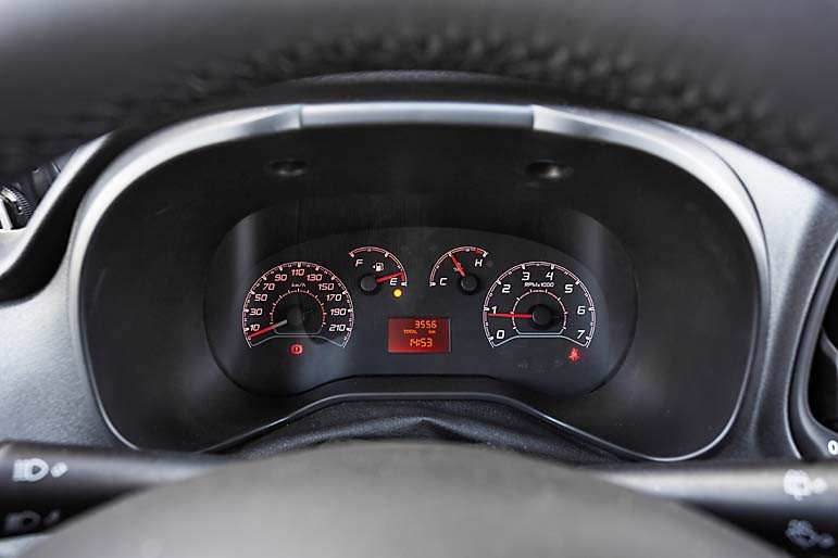 ПРИБОРНАЯ ПАНЕЛЬ у Doblo, хоть и эффектно подсвечена красненьким, но совсем мелкая. Цифры и шкалы читаются с трудом