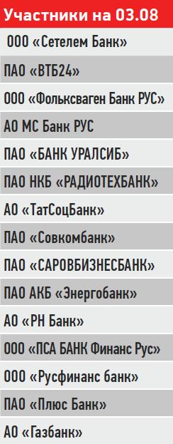 Список кредитных организаций, участвующих в программе «Льготного автокредитования», реализуемой в рамках постановления Правительства Российской Федерации от 16 апреля 2015 г. № 364 «О предоставлении из федерального бюджета субсидий российским кредитным организациям на возмещение выпадающих доходов по кредитам, выданным российскими кредитными организациями в 2015 – 2017 годах физическим лицам на приобретение автомобилей».