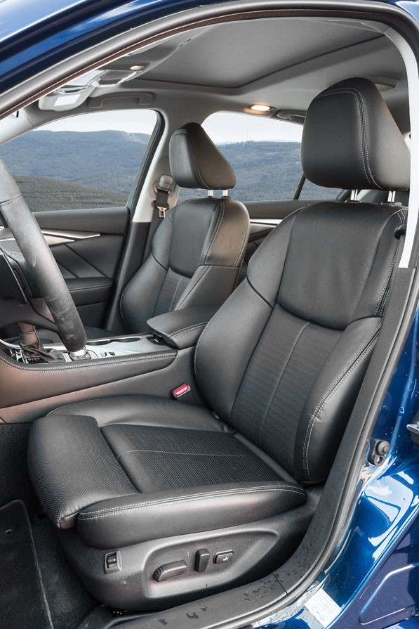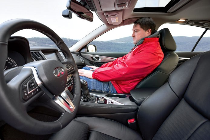 Где же разница заметнее всего? В салоне. Несмотря на то, что Kia Stinger и выглядит агрессивно, и заявленные характеристики его впечатляют, и дизайн интерьера с авиационными мотивами у него яркий, сидишь в этом автомобиле вальяжнее, чем в Infiniti. Хотя бы потому, что в Q50 кресла плотнее обнимают водителя и как-то логичнее настраиваются. Да, в Stinger тоже большой диапазон регулировок и в лифтбеке устроится человек любой комплекции. Но в Infiniti куда проще найти идеальный баланс между удобной позой, правильностью посадки и максимальным обзором.