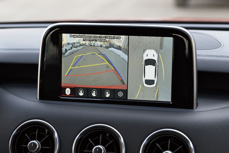 Большая колесная база создает сложности на парковке, но камера кругового обзора с динамической разметкой серьезно помогает
