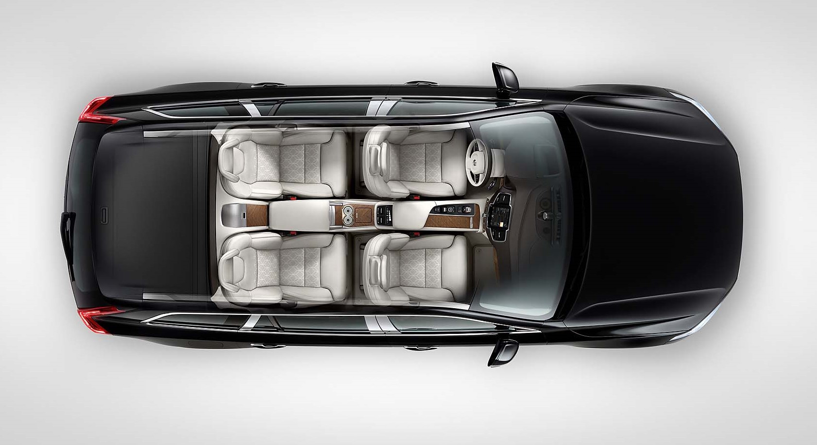 Чтобы обеспечить пассажирам максимальный комфорт, в Volvo XC90 Exellence от заднего дивана решили отказаться. Его место в топовом кроссовере заняли два индивидуальных кресла с регулируемыми по углу наклона спинками, массажем и вентиляцией. В распоряжении пассажиров второго ряда – выдвижные сенсорные монитора, складные столики, холодильник, отделение для бокалов и подстаканники с функцией охлаждения подогрева. Увеличили до 989 мм и пространство для ног.