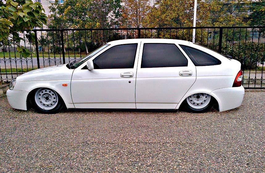 Белая «Приора» получила огромную популярность в кавказских республиках. Экземпляр на фото, скорее всего, на дорогой пневмоподвеске. Хотя в идеале для настоящих горцев было достаточно глухой тонировки, родных штампованных дисков (либо литых «K&K Торус»), могучей музыки и обрезанных пружин. Фартово...