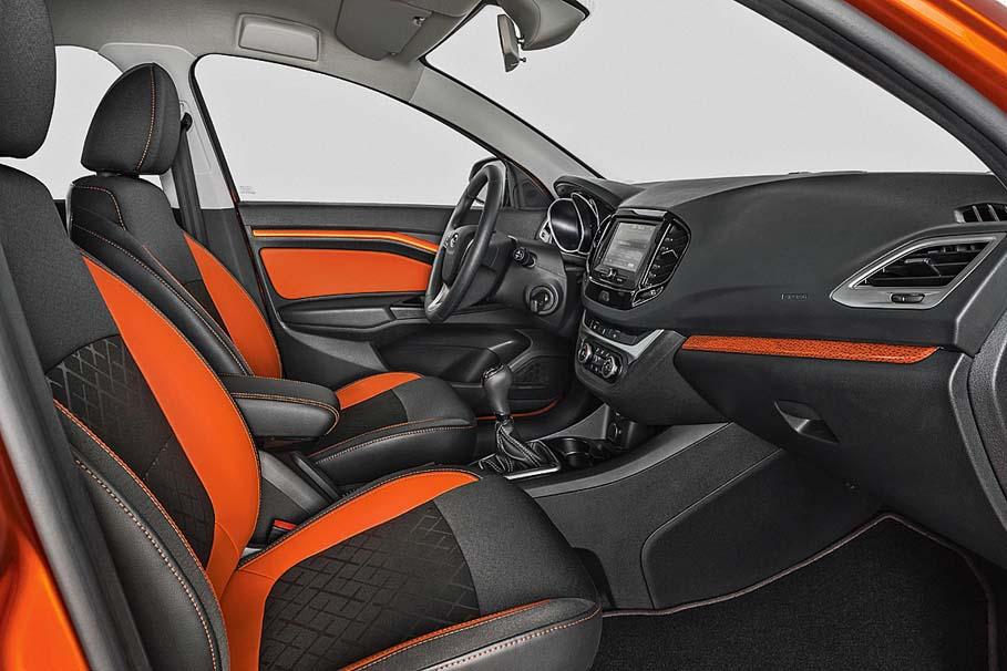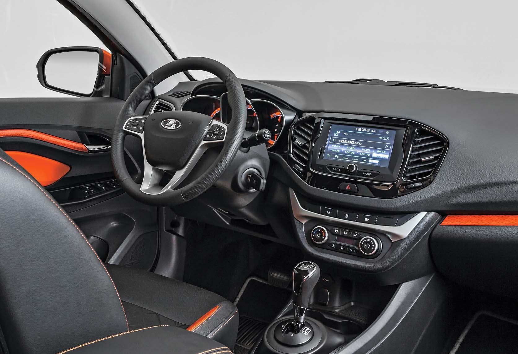 Опознать в движущейся вам навстречу Lada Vesta новую версию SW Cross, или даже простой универсал, достаточно сложно – ниже подоконной линии новая модель унифицирована с базовым седаном. У модификации Cross, правда, оригинальные бамперы. За счет них немного различаются и габариты машин. Стремительный профиль при этом стопроцентно узнаваем – преодолев путь от представленного два года назад концептуального автомобиля до полноправной серийной машины, сходящей с конвейера в Ижевске, Vesta SW не растеряла грации, и это радует. Cross, с «подведенными» посредством неокрашенного пластика контурами, да в ярком оранжевом цвете и вовсе красавец. Интерьер автомобиля оживляет броская обивка из качественной ткани с кожзамом, да оранжевая окантовка шкал на панели приборов. С необходимостью этого «фейерверка» в поле зрения с мало заметными на нем белыми цифрами, кстати, можно поспорить – не станут ли уставать глаза в дальней дороге? Запишем, одним словом, в мелкие придирки. В целом же салон тестовой Lada Vesta SW Cross в богатой комплектации порадовал – он сделан по-прежнему недорого, но производит впечатление добротного, чего тольяттинцам удалось достичь эволюционным путем. Здесь более плотная ткань, там яркая плашка, тут глянцевая вставочка – вот и готово общее впечатление, «исправленное и дополненное».
