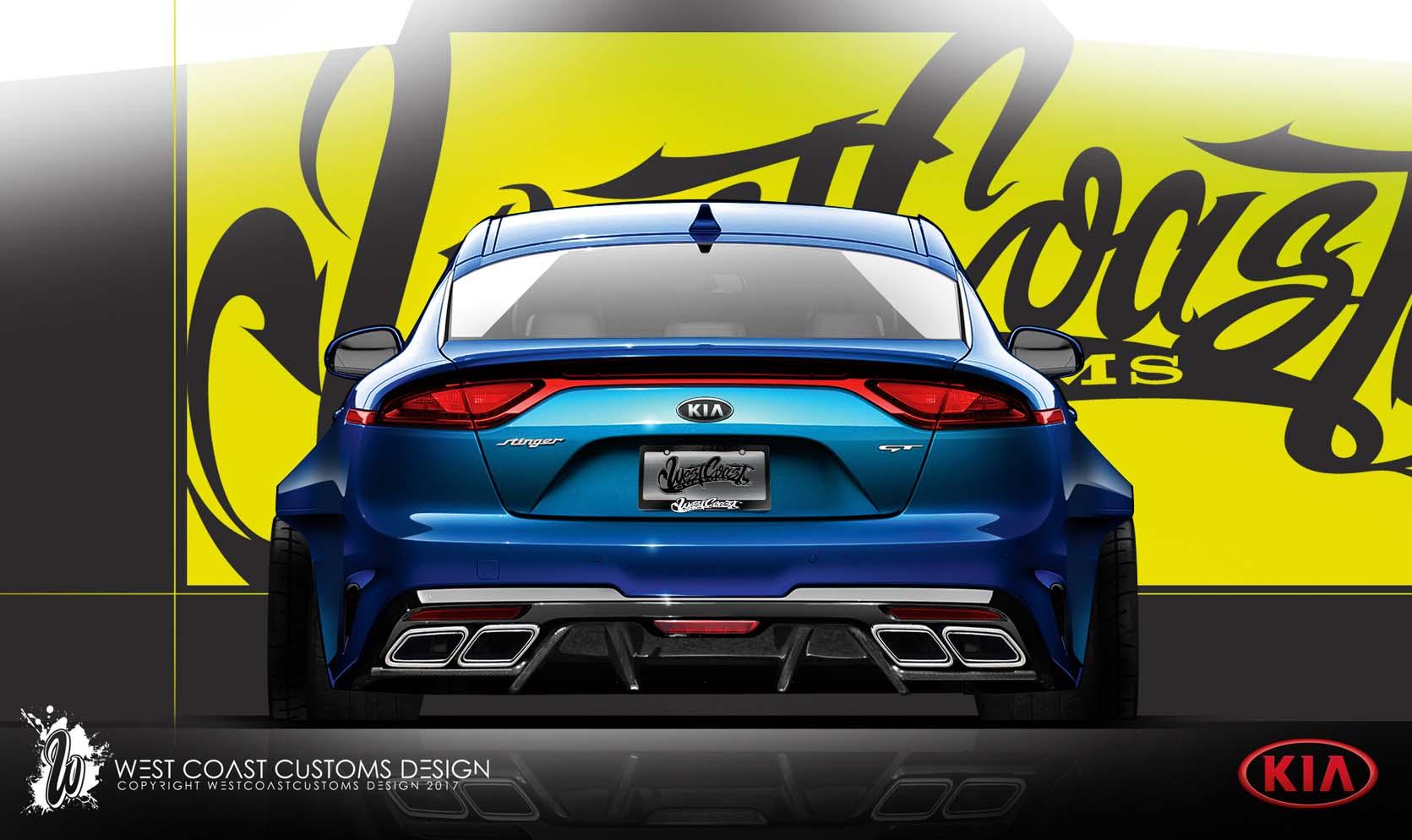 На тюнинг-шоу SEMA корейская марка представила Stinger, подготовленный ателье West Coast Customs, которое известно по участию в программе «Тачка на прокачку». Мастера тюнинга превратили Stinger GT в настоящий гоночный автомобиль. Фастбек получил новую подвеску и аэродинамический обвес из углепластика. Кроме того, специалисты West Coast Customs расширили колесные арки, украсили радиаторную решетку черным глянцем и расставили несколько новых ярких акцентов в интерьере Stinger. Также автомобиль получил 21-дюймовые кованые диски особого дизайна и оригинальные сдвоенные патрубки выхлопной системы.