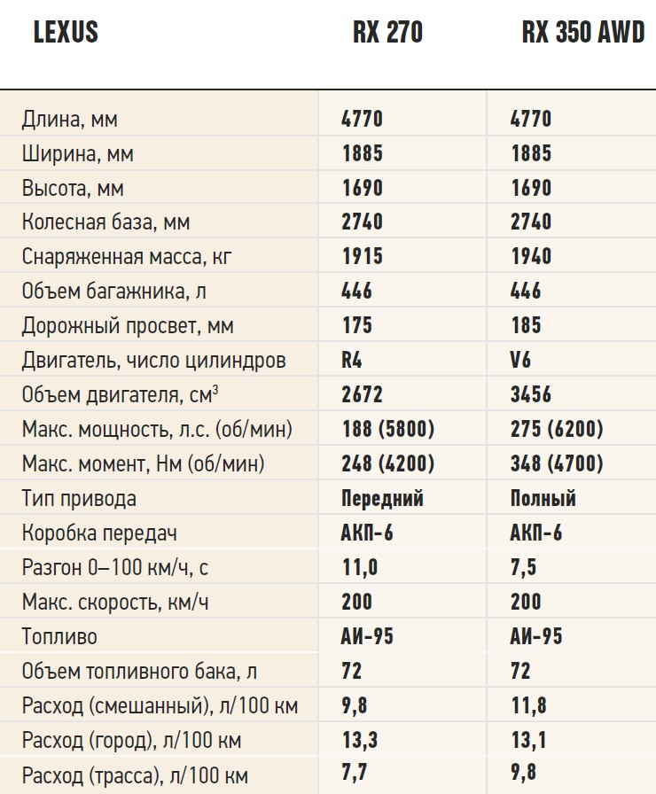 Правила выбора просты: о машине после ДТП мы не говорим, это понятно, но переднеприводный RX 270 (188 л.с.) – актив не лучший. Нет, с надежностью мотора 1AR проблем нет. Просто у премиального, по сути, автомобиля 11 секунд до «сотни» плохо «бьются» с городским расходом в 14 л/100 км. Мотор слабоват. К тому же полноприводный RX 350 (275 л.с.) не окажется принципиально дороже. В свою очередь гибрид RX 450h с V6 и двумя электромоторами суммарной мощностью 295 «сил» на топливе денег вам не сэкономит. И уж точно не сэкономит потом, когда придет время менять батарею. Случается такая оказия примерно лет через 10 лет эксплуатации автомобиля. А стоит процедура изрядно – до 500 000 рублей. Это если идти к «официалам» и не связываться с «кустарями». И чем старше гибрид, тем сложнее его потом «сбросить».