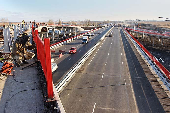 На выезде из Ростова-на-Дону запустили рабочее движение по новой развязке, которая находится на 2-м км федеральной трассы А-135 «Подъездная дорога к Ростову-на-Дону» от магистрали М-4 «Дон». Пока в эксплуатацию введен лишь первый пусковой комплекс первого этапа реконструкции Южного подъезда к городу. Речь идет о 6-полосном пойменном мостовом сооружении и 2-полосной эстакаде на выезде из Ростова. Кроме того, открыта дорога А-135 на участке со 2-го по 4-й км. Ее расширили с четырех до шести полос. Однако работ здесь еще невпроворот: специалистам предстоит закончить строительство разворотного путепровода в районе 4-го км Южного подъезда к городу, а также благоустроить участок. На реализацию проекта выделено 2,9 млрд рублей.