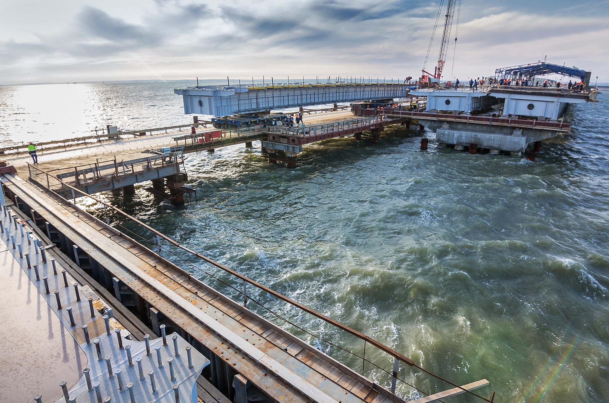 Инфоцентр «Крымский мост» отчитался: сооружение опор под автодорожный мост полностью завершено. Сборка пролетов под автомобильную дорогу также подходит к концу. Всего у автодорожного моста в Крым 288 опор, включая 85, расположенных в акватории. Именно на них было сосредоточено внимание строителей в уходящем году. При устройстве автодорожных опор строители погрузили свыше трех тысяч свай. Из них более 2,5 тысяч стальных трубчатых свай, чья общая длина – порядка 160 км. Средняя глубина погружения свай 50 метров от поверхности суши или моря, а на одном из участков глубина достигала 88 метров. Автодорожное полотно Крымского моста – нить металлоконструкций протяженностью около 17 км и весом более 100 тыс. тонн. На морском участке строительства от косы до о.Тузла использовался метод поперечной надвижки для сборки пролетов, а на участках от фарватера до берега Керчи и от острова до фарватера – метод продольной надвижки. Сегодня стройка переходит к работе в зимний период. Продолжается устройство опор, пролетов ж/д части, обустройство мостового полотна автодорожной части. Напомним, автомобильная часть моста получит четыре полосы движения. И к настоящему моменту уложено 13 км нижнего слоя покрытия и почти 8 км верхнего.