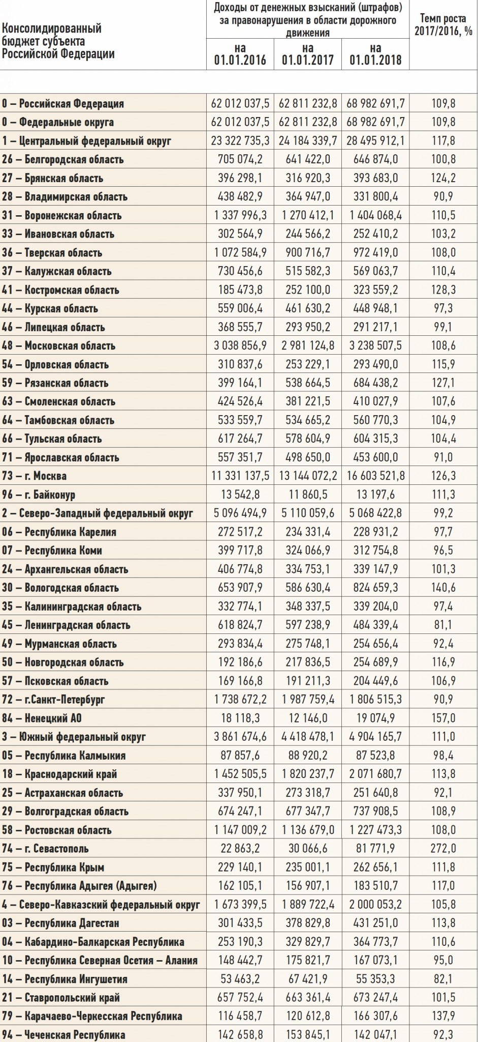 Информация о поступлении доходов от уплаты штрафов (денежные взыскания (штрафы) за правонарушения в области дорожного движения)