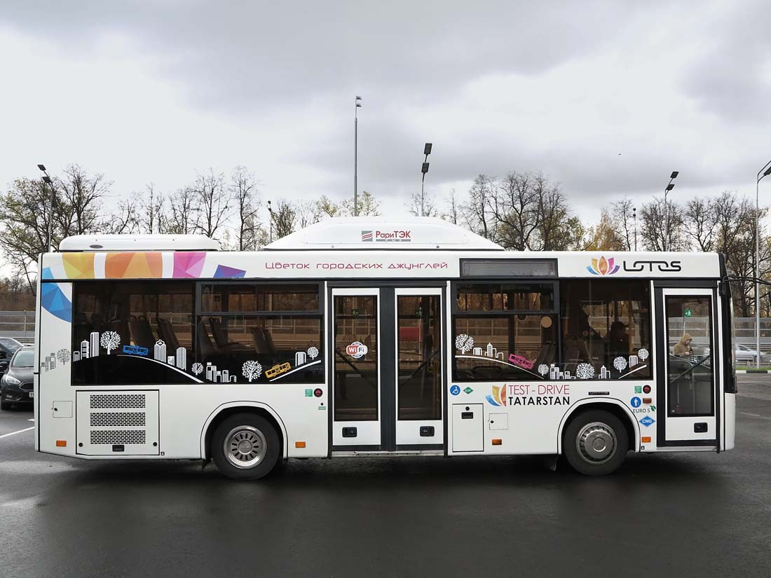 Компания «РариТЭК» – крупнейшая в России по проектированию и конвертации транспорта с традиционного топлива на сжатый (CNG) и сжиженный (LNG) природный газ. Год назад был презентован Lotos 206 пассажировместимостью до 72 человек (27 сидячих мест). Платформой для него послужило лицензионное шасси автобуса МАЗ-206. Газовые баллоны расположены на крыше и вмещают 615 л метана, обеспечивая запас хода не менее 450 км. Газовое оборудование надежно защищено от любых внешних воздействий, при каждом старте двигателя выполняется автоматическое тестирование. Силовой агрегат – 184-сильный газовый двигатель Yuchai, АКП – Allison, Voith, ZF. Компания способна производить до 100 газовых автобусов в год. «Лотосами» заинтересовались обе российские столицы, Новосибирск, Екатеринбург, Тюмень, Кемерово и Крым. На следующий год намечен их экспорт в Казахстан, Узбекистан и Киргизию.