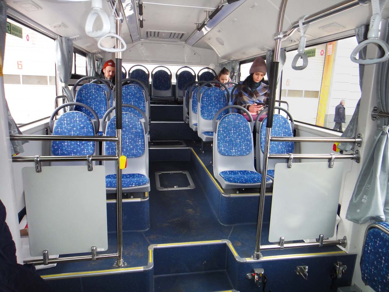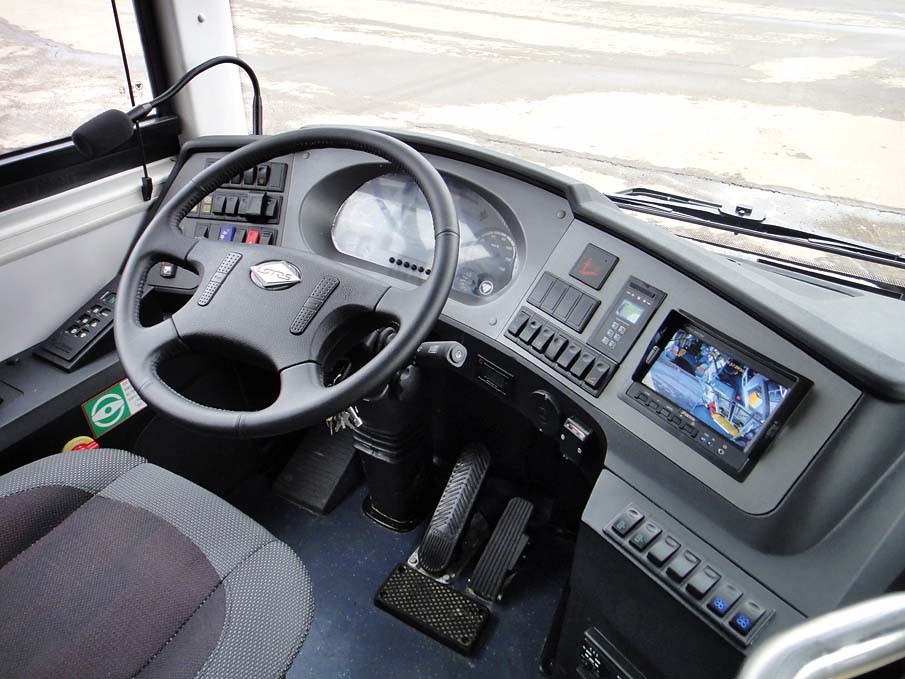 Водительское кресло на пневмоподвеске, впрочем, как и автобус в целом, что позволяет совершать книлинг – небольшой наклон для удобства входа и выхода пассажиров.