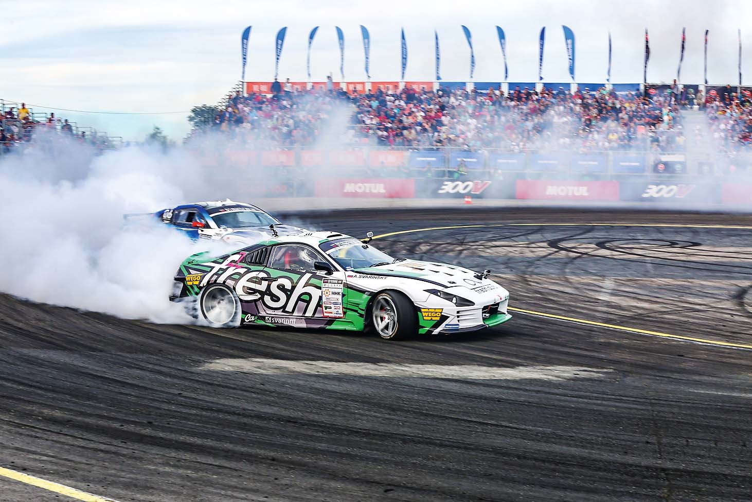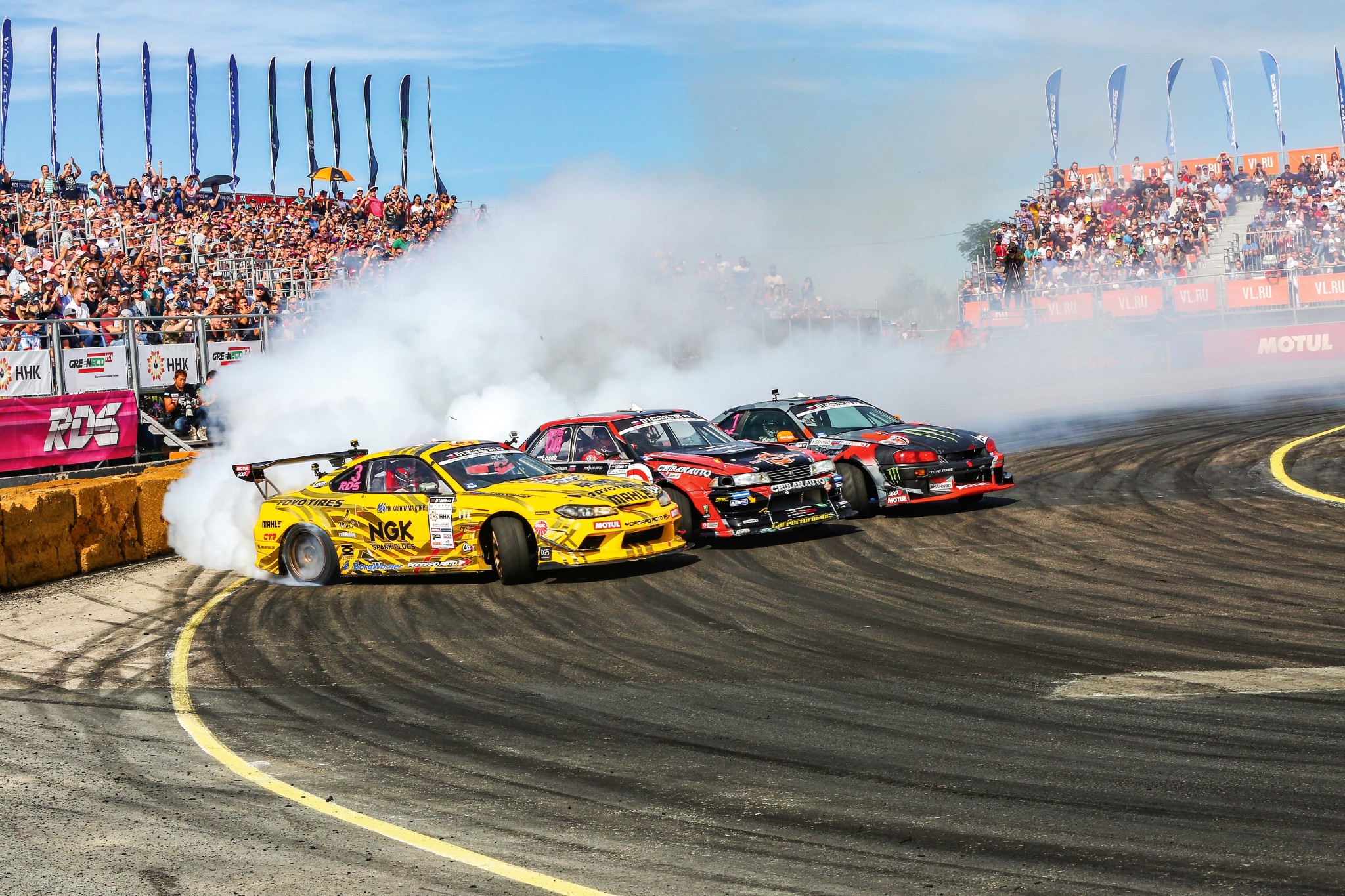 Еще бы, ведь на «Приморском кольце» встретились восемь лучших пилотов России и восемь лучших пилотов Японии. Спортсменам предстояло выполнить три раунда заданий и набрать как можно больше баллов для своей команды. Сначала в одиночных заездах, потом в синхронных заездах троек, и, наконец, в парных. Что интересно, подобный формат применялся впервые. Накал страстей кипел до самого конца. Были и развороты, и аварии, и технические сходы. Одиночные судились так: проезжал один пилот, потом другой, и чьи результаты по оценке от системы судейства DOSS оказывались выше – той команде и доставался балл. Тут лидировали японцы. В синхронных заездах дрифтили сразу три пилота! Баллы каждого складывались, и также сравнивались результаты с тройкой соперников. Выиграли наши. В парных все просто – если пилот победил, очки идут его команде. И тут интрига достигла своего апогея. Для победы нужно было набрать 8 очков, и в какой-то момент счет практически сравнялся и был 6:5 (в пользу России). Все решилось в следующих двух заездах, оба выиграли пилоты РДС. Таким образом победу по итогам дня одержала команда России!