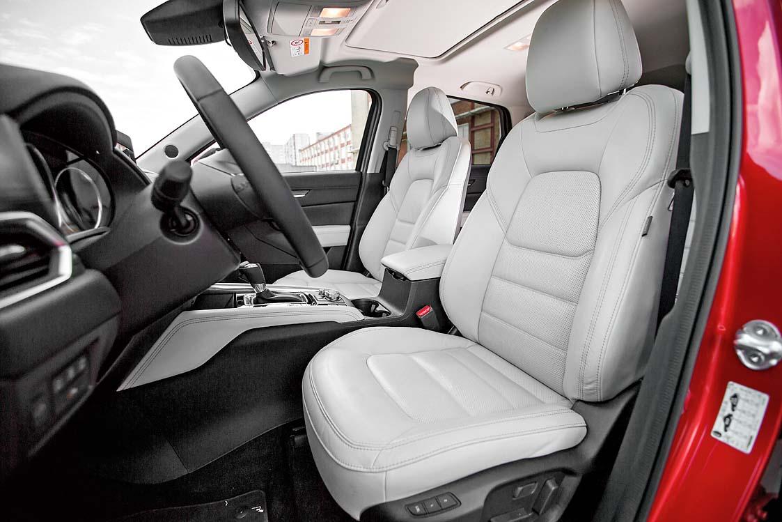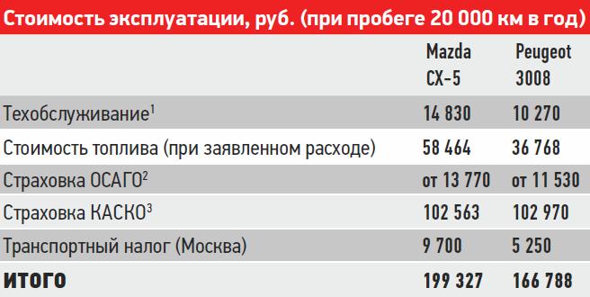 Зато на сухом асфальте Peugeot своего не упустит. За счет заметного преимущества в крутящем моменте бензиновый 3008-й легко уезжает даже от более мощной соперницы. Дизельный кроссовер чуть медлит на стартах, но с лихвой отыгрывается на шоссе. Правда, при активном рулении «француз» воспринимается несколько резковатым. Впрочем, не настолько, чтобы это сильно напрягало. А вот реакции обновленной «Мазды», наоборот, стали мягче. Остроты в управлении поубавилось. Но какая прибавка в комфорте! Несмотря на низкопрофильные шины и 19-дюймовые диски, подвеска обеспечивает плавный ход и на изрядно потрёпанном асфальте. Шасси Peugeot далеко не самое зубодробительное, но в плане комфорта с маздовским не сравнится.
