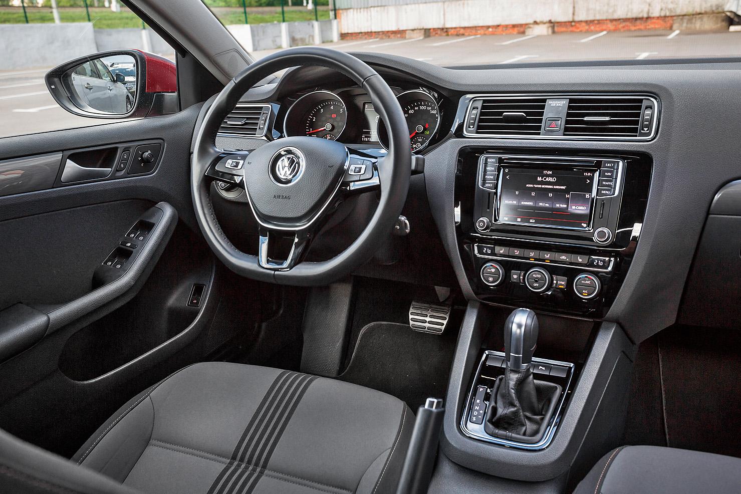 Как ни странно, но потягаться с конкурентами в популярном в России сегменте среднеразмерных седанов решили и прагматичные до мозга костей немцы из Volkswagen. В противовес молодежной «трешке» они выставили, не поверите, практичную Jetta! Только «Джетту»-то не узнать. В интерьере – контрастные цветовые комбинации, в экстерьере – черные глянцевые вставки… Мы не узнаем тебя, Jetta!