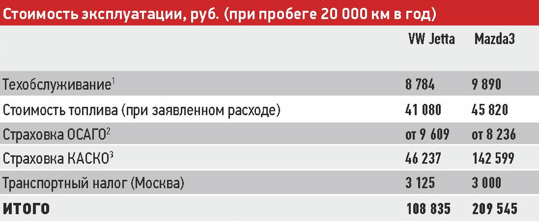 И все же, если считать вложения, которые потребуются на покупку одного из двух соперников, более привлекательно смотрится именно «немец». Да, у Jetta не все «полезное» оснащение входит в фиксированные комплектации. За что-то придется доплачивать. Или нет. Это дело добровольное. Но владение «Маздой» обойдется дороже, и довольно заметно дороже – почти на сто тысяч рублей больше в сравнении с конкурентом. Увы, «трешка» таким образом вынуждена расплачиваться за народную любовь – в различных значениях этого понятия. Автомобиль оказался востребован не только среди любителей быстрой езды, но и среди угонщиков, а отсюда и высокая стоимость каско. Застраховать на год японский автомобиль стоит почти 150 тысяч рублей.