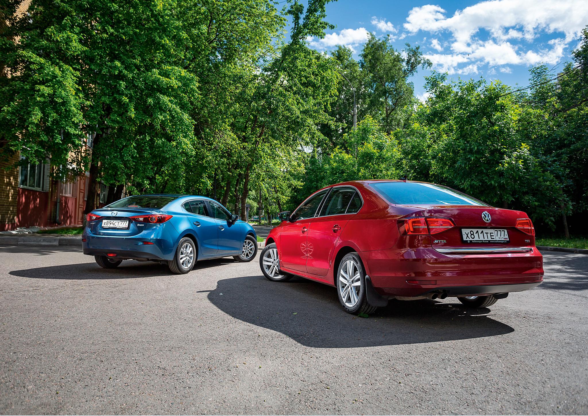 Volkswagen Jetta и Mazda3 знают, как правильно держать себя на дороге. Оба автомобиля – юркие, маневренные и точные на прямой и в поворотах. А сравнительно небольшие габариты позволяют быстро и легко припарковаться даже на узеньких улочках. В общем – одни плюсы.
