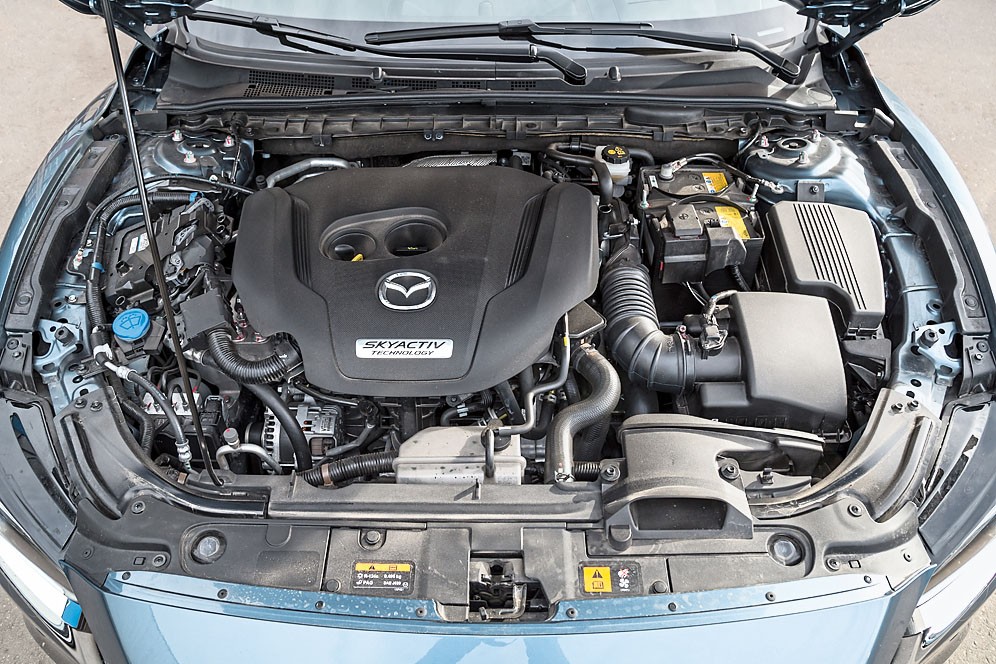 А пока имеем что имеем, и это, доложу я вам, тоже неплохо. Рестайлинг не только освежил «мордашку», но и увеличил возможность выбора моторов. У нас топовый 2,5-литровый бензиновый турбомотор на 231 л.с. и 6-ступенчатый автомат, которые в режиме Sport если и не размазывают седоков по креслам, то уважение к себе вызывают однозначно. Динамика более чем уверенная, особенно – с хода. А эластичность выше всяких похвал. Автомат транслирует взрывную мощь турбины без рывков. Тяга хорошо ощущается и «внизу», и, особенно, «вверху». Удивленные отменной шумоизоляцией (не случайно же машина потяжелела почти на центнер), точной работой руля и подвески, подпираемые креслами с новой улучшенной набивкой, наслаждаемся конечным результатом. Cловом, споры, можно ли отнести Mazda6 к премиум-сегменту, получили новую пищу. По ездовым характеристикам точно можно...