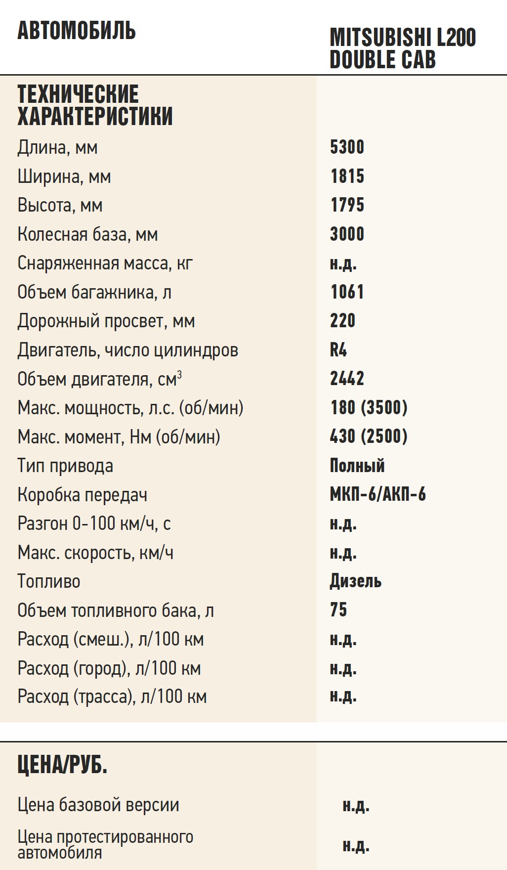 На заводе Mitsubishi в Таиланде выпускают почти 200 000 пикапов L200 ежегодно. Не все они, правда, называются L200 – на многих рынках пикап продается как Triton. В разных странах есть разные версии: с одинарной, полуторной (с распашными задними дверями) и двойной кабиной – эта модификация как раз поставляется к нам. Сейчас в России можно купить дорестайлинговый автомобиль, и его продажи еще будут продолжаться, как и производство в Таиланде. Обновленный автомобиль попадет к нам только в следующем году. И то не в самом начале.